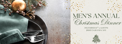 Join us at Jimmy's Grand Cafe on Sunday, December 14th for our annual Men’s Christmas Dinner, where holiday cheer meets hearty appetites! Whether you’ve been with us all year or this is your first time joining in, we’d love to have you at the table. Bring your appetite, your sense of humor, and maybe a friend who could use some Christmas encouragement!